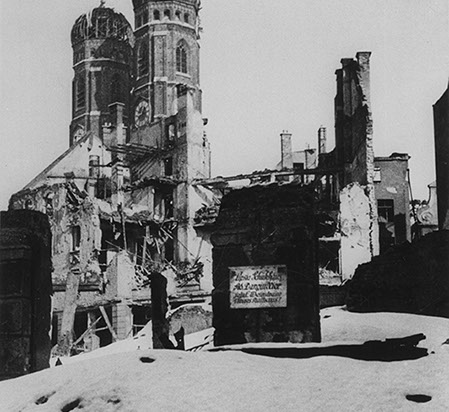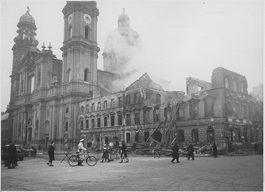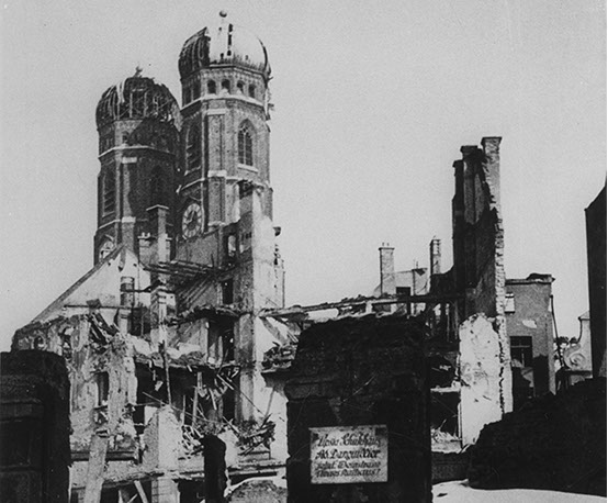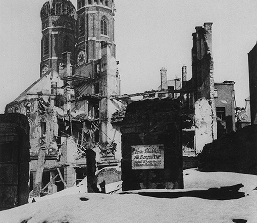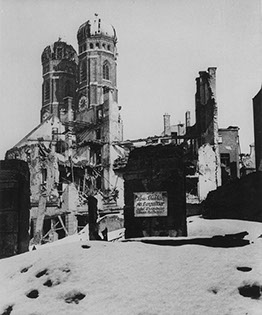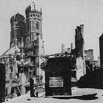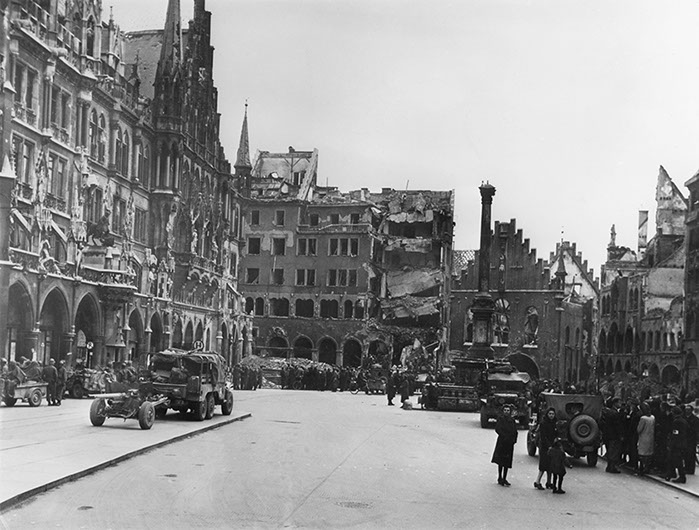 Mit der Kapitulation deutscher Soldaten und der Übergabe des Rathauses endet die nationalsozialistische Diktatur in München. Die Stadt ist zu rund 50 Prozent zerstört, in der historischen Altstadt sind es sogar bis zu 90 Prozent.
